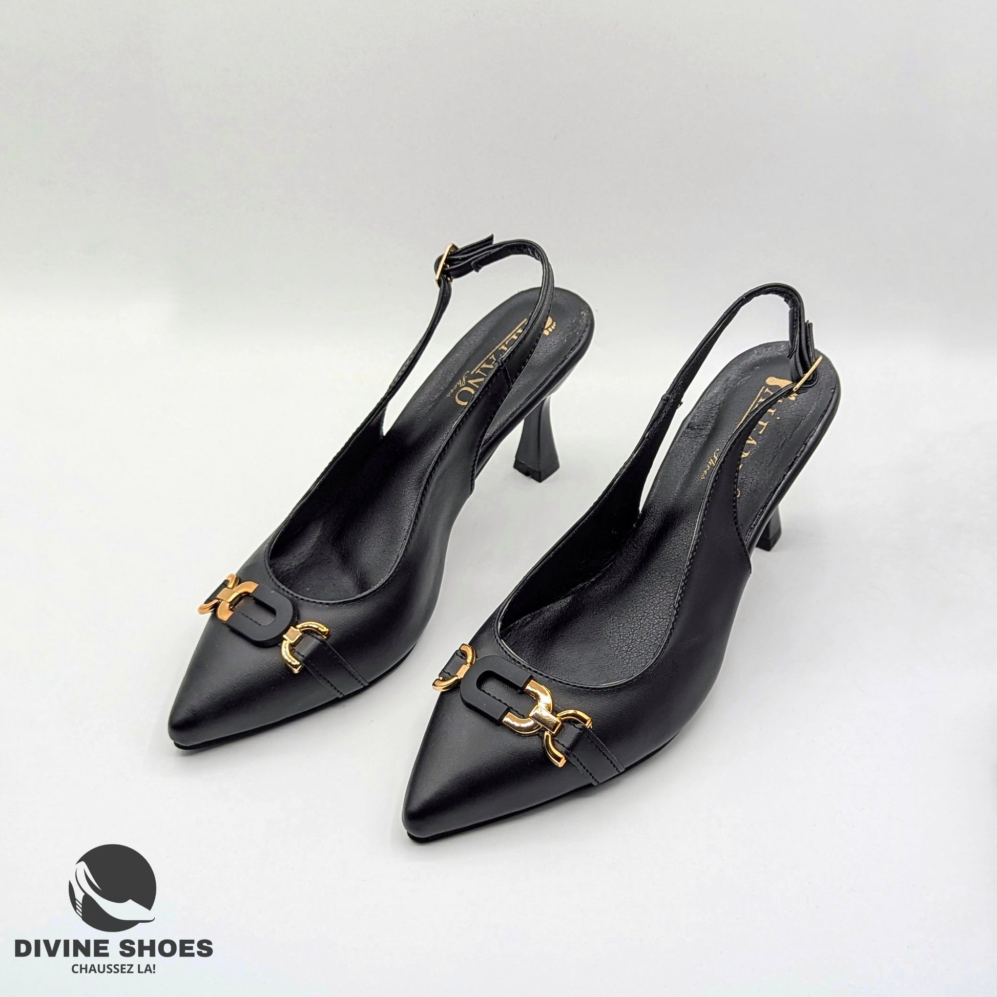 Elara est l’escarpin slingback qui apporte cette touche raffinée et féminine à votre robe ou ensemble.